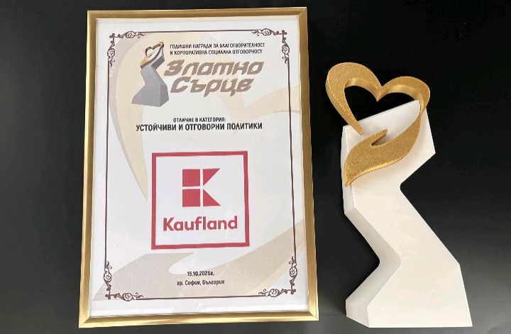 Инициативата на Kaufland България, насочена към изграждане на добри хранителни навици сред подрастващите „Значението на добрата храна“, получи отличието „Златно сърце“ от Десетите годишни награди за благотворителност и корпоративна социална отговорност.