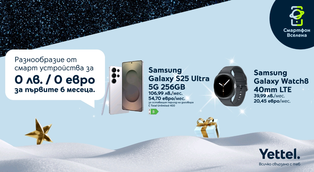 С наближаването на празниците Yettel дава възможност на клиентите си да се сдобият с едни от най-желаните смартфони и носими устройствa, като започнат да ги изплащат чак в началото на лятото.