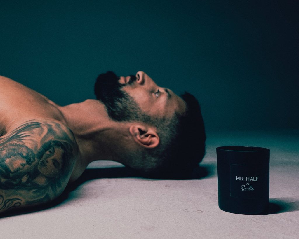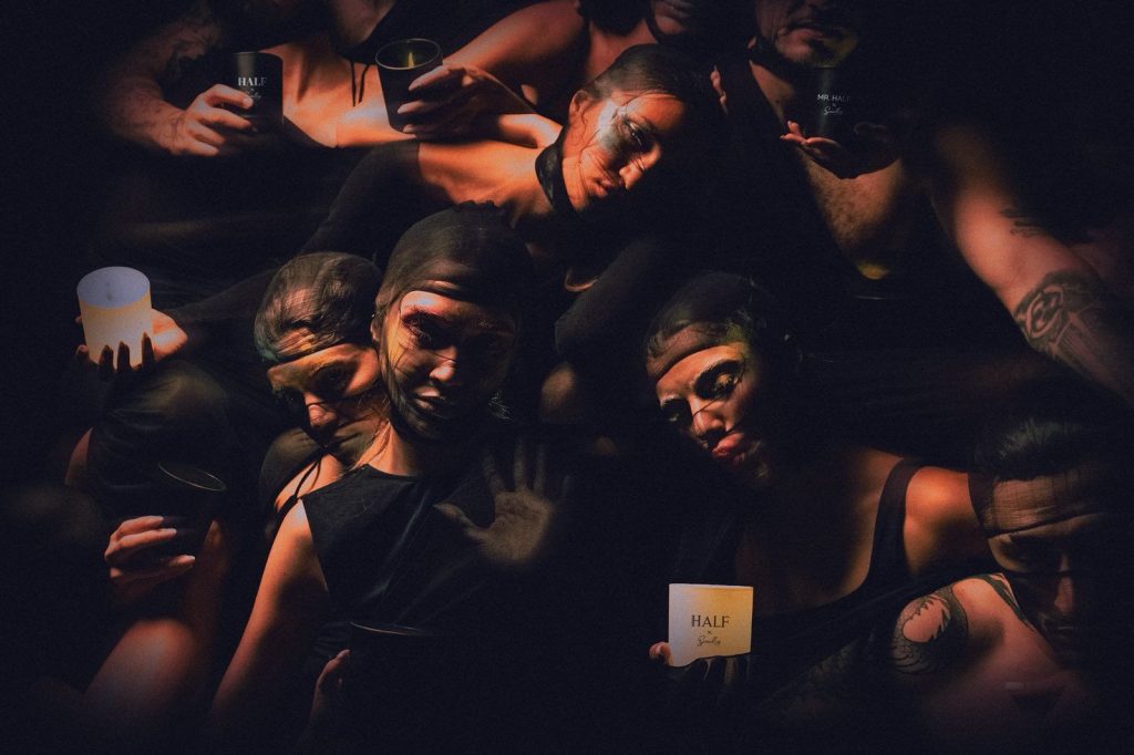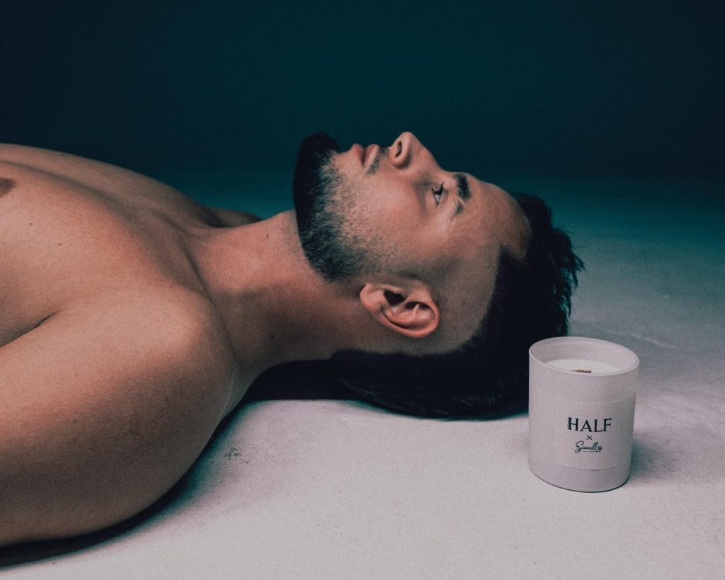 Фотосесията към проекта е освежаващо ексцентрична – балансираща между модна визия и артистична инсталация. Специалната свещ, посветена на Mr. Half, е централният акцент на линията. Восъкът, който може да бъде използван и за масаж, превръща продукта в нещо повече от ароматен аксесоар – това е преживяване за тяло и сетива.