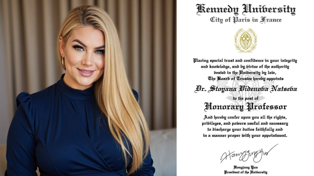 България получава ново силно международно признание на академичната и интелектуалната сцена. Д-р Стояна Нацева – доктор по психология и бизнес администрация, университетски преподавател, трансформиращ лидер и автор на бестселъри – официално е назначена за Honorary Professor (Почетен професор) в Kennedy University, със седалище в Париж, Франция.